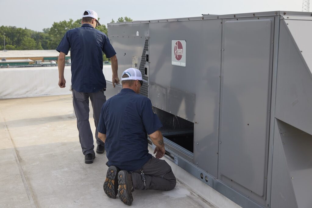 For larger facilities, DX equipment and packaged rooftop units are installed with speed and care. New systems or retrofits are completed with minimal disruption, including duct tie-ins, crane lifts, and controls integration.
