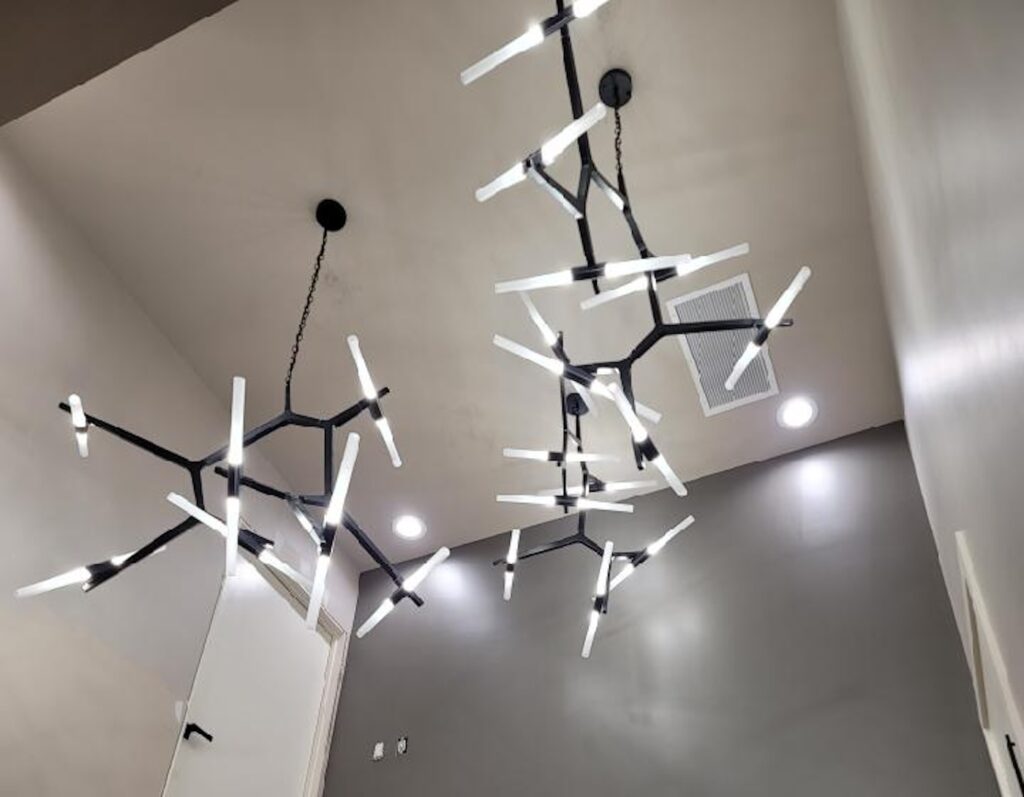 Modern LED systems offer superior light quality and energy savings. Fixtures are installed to match the needs of offices, warehouses, and specialty environments—from high bays to custom display lighting.